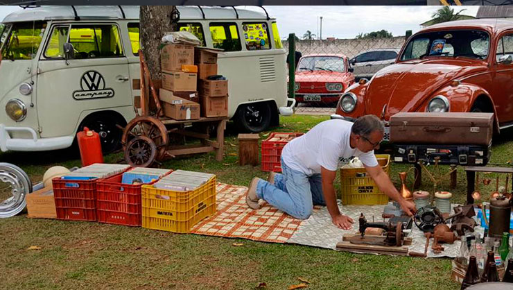 Além da exposição dos veículos, no local também teve feira de artesanato, recreação infantil e um delicioso pirão com linguiça. A música ficou por conta do tijuquense Guilherme Franzoi e Kombination.