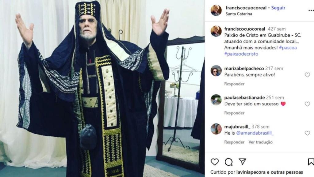 A morte do ator Francisco Cuoco, confirmada nesta quinta-feira (19), despertou lembranças emocionadas em Santa Catarina, especialmente em Guabiruba, no Vale do Itajaí. O artista protagonizou um momento inesquecível ao participar, há oito anos, da tradicional encenação da peça “Paixão e Morte de um Homem Livre”, organizada por moradores da região.