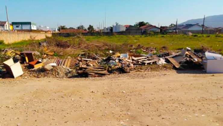 Ela comentou ainda que a prefeitura já limpou o local diversas vezes, mas todas as noites são vistas pessoas em automóveis dispensando lixo. “O terreno está virando um lixão”, relatou.
