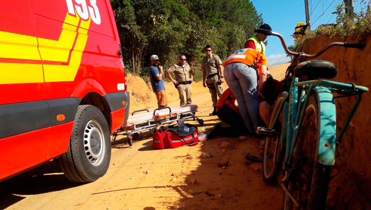Uma mulher ficou ferida ao cair de bicicleta em uma descida de morro em Canelinha. Este acidente aconteceu na tarde deste domingo (26) localidade conhecida como Morro da Cidade Baixa.