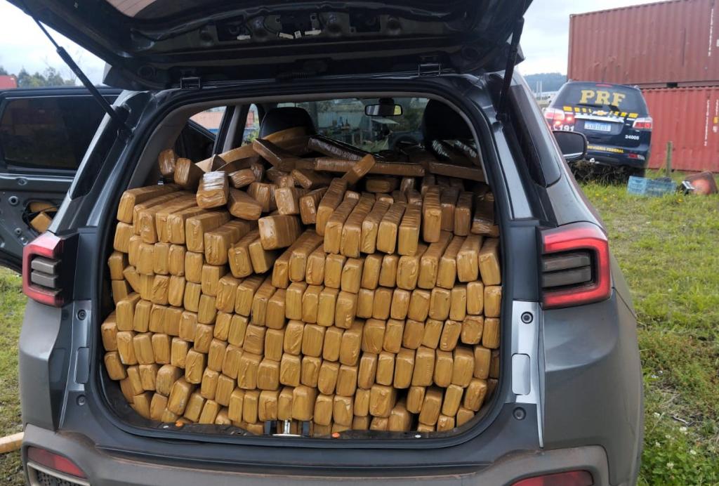 No interior do automóvel, um Chery/Tiggo 5X, foram encontrados cerca de 500 quilos de maconha em tijolos, que foram encaminhados à Polícia Federal de Itajaí para pesagem oficial. A vistoria também revelou que o carro possuía registro de roubo em Barueri (SP) e circulava com placas clonadas, idênticas às de outro veículo com as mesmas características.