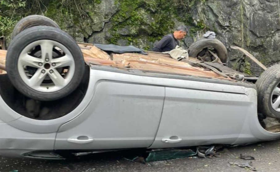 Com a força do impacto, o automóvel acabou capotando, provocando lentidão e congestionamento na rodovia. Equipes de socorro foram acionadas para o local, mas não há informações confirmadas sobre feridos.