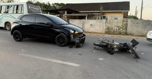 Um carro e uma motocicleta se envolveram em um acidente na tarde desta quarta-feira (15), na Rua João Andregtoni, próximo à entrada do bairro Tajuba 1, em São João Batista.