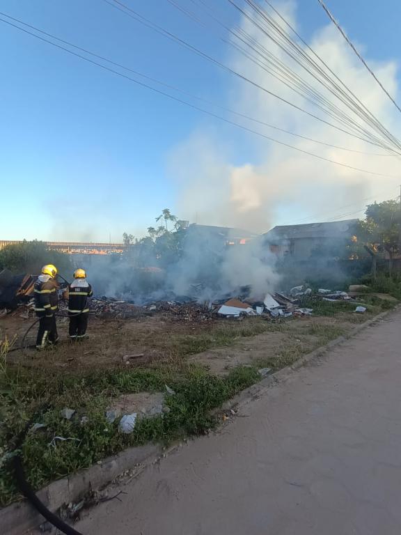 Equipes do Corpo de Bombeiros Militar de Tijucas foram acionadas por volta das 17h25 desta quarta-feira (15) para conter uma queima de entulho em terreno baldio na Rua Osvaldo A. Cordeiro, em Tijucas, na Grande Florianópolis.