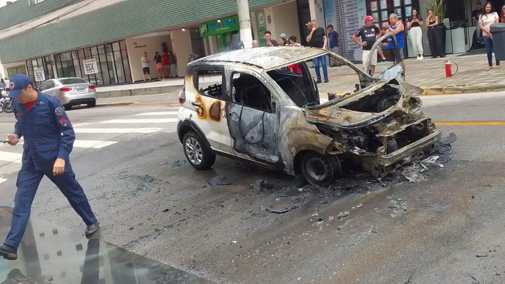 Os Bombeiros Militares foram acionados na manhã deste sábado (18), por volta das 10h29, para atender a um incêndio em veículo na Rua 132, no Centro de Itapema.