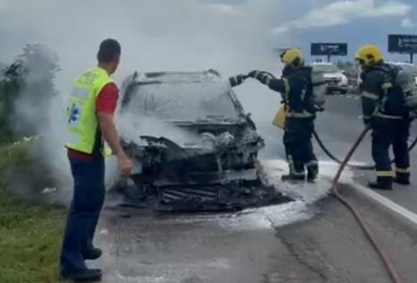 Um carro da marca Volvo pegou fogo na tarde de sábado (18) na BR-101, em Tijucas, após apresentar uma pane elétrica.