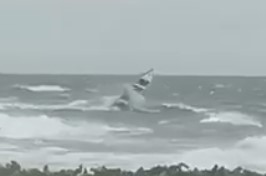 O condutor foi arremessado ao mar no momento em que o barco virou, mas foi resgatado com vida pelo Corpo de Bombeiros.