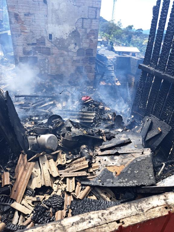 Um incêndio destruiu completamente uma casa de madeira na manhã desta quinta-feira (23), por volta das 9h26, na Rua 1202 E, nº 52, bairro Ilhota, em Itapema.