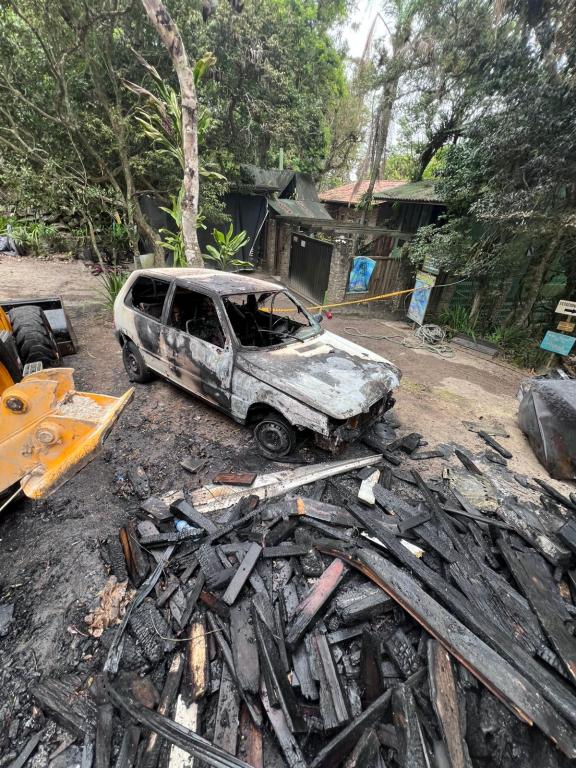 Um incêndio de grandes proporções foi registrado na madrugada deste sábado (25) na Rua Garoupas, no Centro de Bombinhas. O Corpo de Bombeiros foi acionado por volta das 5h49 para atender a ocorrência, que envolveu a destruição total de um rancho de madeira e danos a dois veículos que estavam estacionados no local.