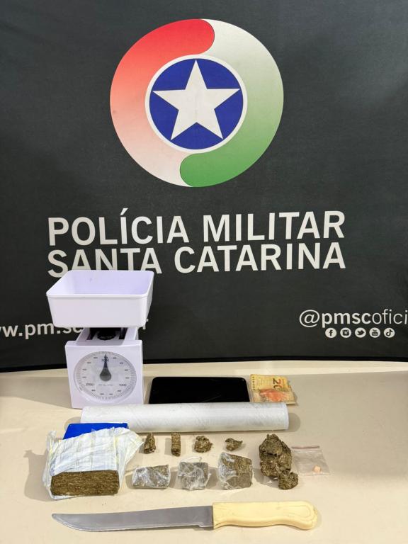 Diante da fundada suspeita e com a devida autorização da responsável pelo imóvel, os policiais realizaram a entrada na residência, onde foram localizadas aproximadamente 314 gramas de maconha, um comprimido de ecstasy, uma balança de precisão, papel filme para embalar drogas e um aparelho celular.