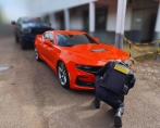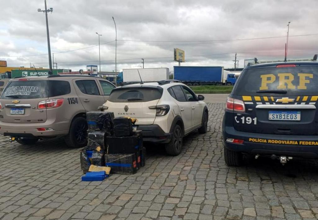 O flagrante ocorreu após troca de informações entre as duas forças de segurança, que localizaram o veículo suspeito. Antes mesmo da aproximação final dos agentes, o condutor, paranaense de 24 anos, já colocou as mãos para fora da janela em sinal de rendição.