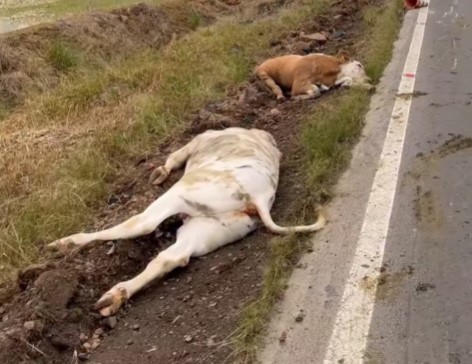 As circunstâncias do acidente ainda serão apuradas. De acordo com relatos preliminares, os bovinos teriam invadido a rodovia de forma repentina, o que pode ter impossibilitado o condutor de evitar a colisão.