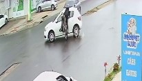 Câmeras de segurança registraram um acidente entre um carro e uma motocicleta na tarde desta sexta-feira (7), por volta das 17h, na Avenida Coleira, em Tijucas.