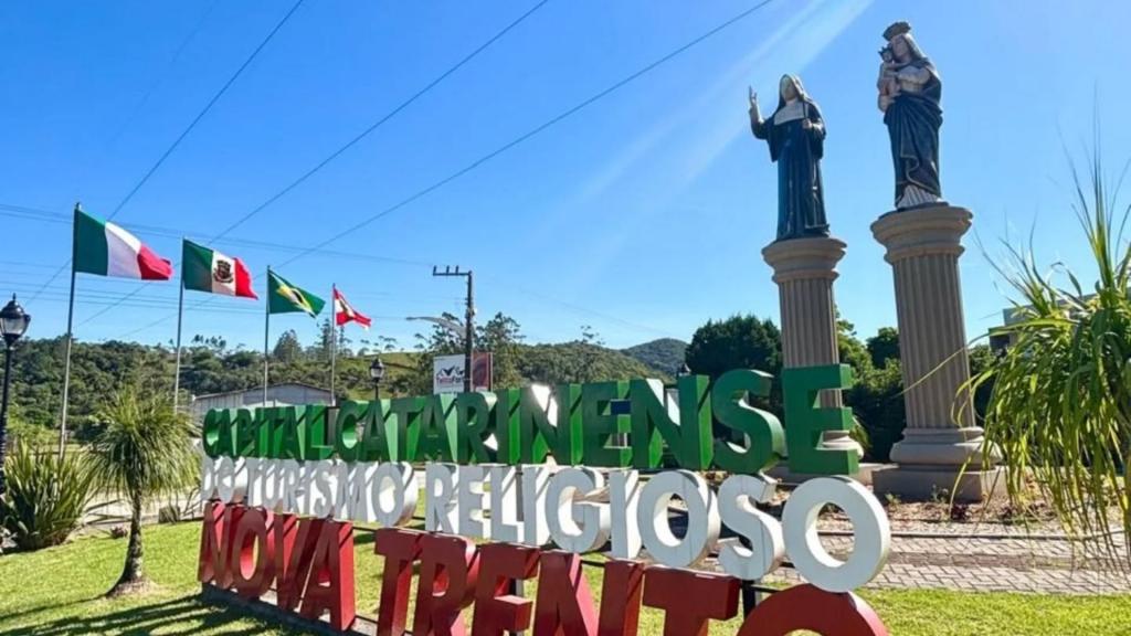 O principal acesso de Nova Trento ganhou um novo elemento de destaque nesta terça-feira (11). No Trevo do Besenello, a entrada da cidade passou a exibir a bandeira da Itália, gesto que conclui o conjunto de símbolos culturais instalados no canteiro central, onde já estão os monumentos de Santa Paulina, Nossa Senhora do Bom Socorro e o letreiro que identifica o município como Capital Catarinense do Turismo Religioso.