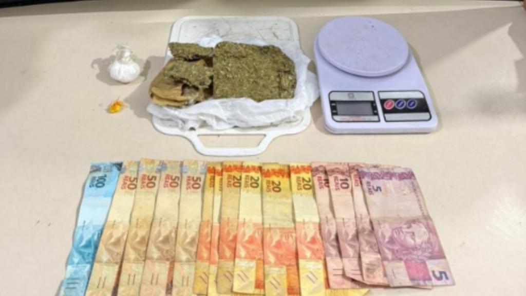 Durante as rondas, um dos suspeitos tentou fugir ao notar a aproximação da guarnição, correndo por um beco e entrando em uma residência. Os policiais acompanharam o homem, entraram no imóvel e realizaram a abordagem. No interior da casa foram encontradas porções de maconha e cocaína, parte já fracionada para venda, além de uma balança de precisão, R$ 455 em notas fracionadas e materiais usados no preparo da droga.