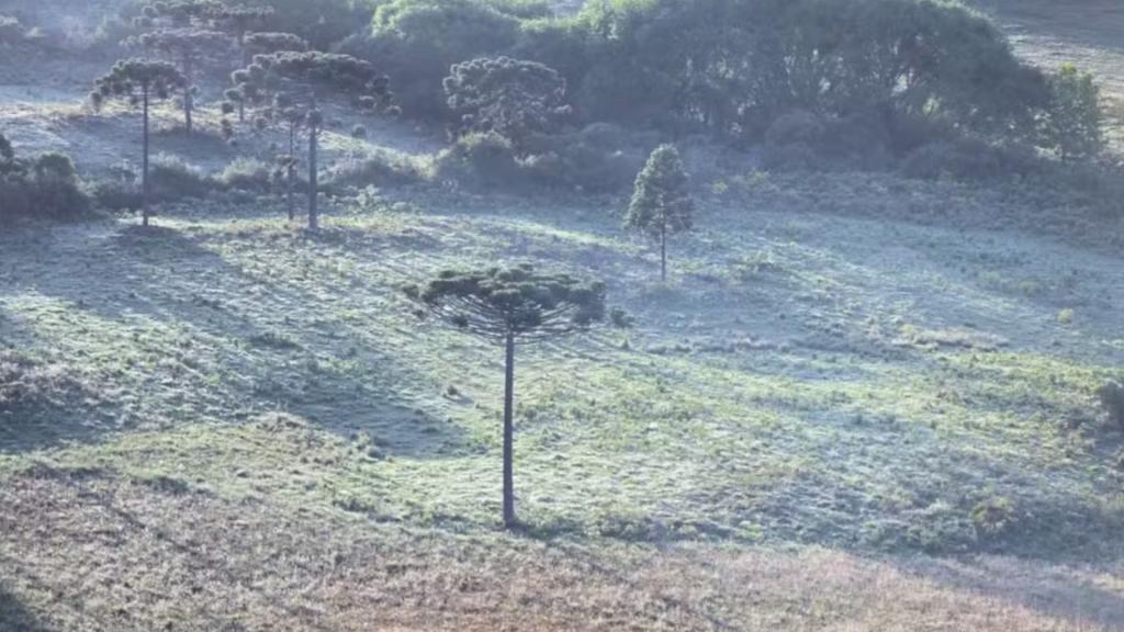 Uma paisagem digna de julho tomou conta da Serra catarinense na manhã desta quinta-feira (20), quando o amanhecer revelou carros, campos e vegetação cobertos por geada, um contraste inesperado para um estado que já vive dias de calor pré-verão. A combinação de ar seco e frio derrubou as temperaturas e trouxe de volta o visual congelado que costuma marcar o inverno na região.