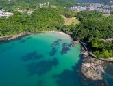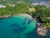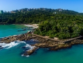 Com apenas 120 metros e acesso por passarelas, a Praia do Ribeiro conquista visitantes com água cristalina, natureza preservada e sossego raro entre dois dos destinos mais movimentados do litoral. Fotos: Divulgação