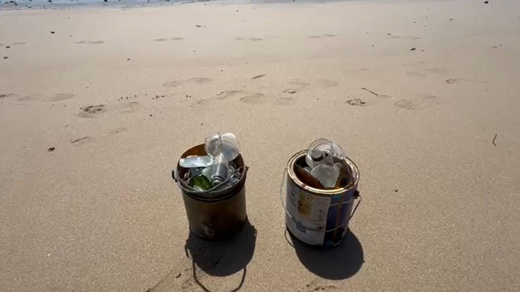 Um passeio rotineiro pela praia acabou virando um alerta sobre o acúmulo de lixo na orla do Pontal Norte, em Tijucas. Ao caminhar pela faixa de areia, um morador se deparou com uma grande quantidade de detritos, principalmente cacos de vidro, e decidiu registrar o momento enquanto recolhia o material por conta própria, usando um balde e uma lata improvisada.
