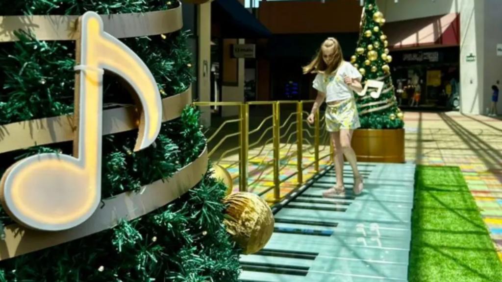A ambientação deste ano segue um roteiro sensorial que mistura música, afeto e estética temática. A decoração parte de uma árvore de 10 metros posicionada no chafariz e se desdobra por corredores, áreas abertas e pela nova expansão do outlet, sempre marcada por partituras, notas musicais, símbolos dourados e uma paleta que combina branco, verde e dourado. Árvores naturais, como jabuticabeiras e palmeiras, também receberam iluminação cênica para reforçar a atmosfera festiva. Segundo a gerente de marketing Aline Righi, o piano gigante é “a novidade mais comentada”, planejada para criar uma experiência lúdica e altamente compartilhável.