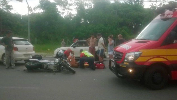 Com o impacto da batida, o motociclista foi arremessado ao chão e sofreu escoriações pelo corpo. Socorristas foram acionados e após realizarem os primeiros atendimentos, a vítima foi conduzida para o hospital.
