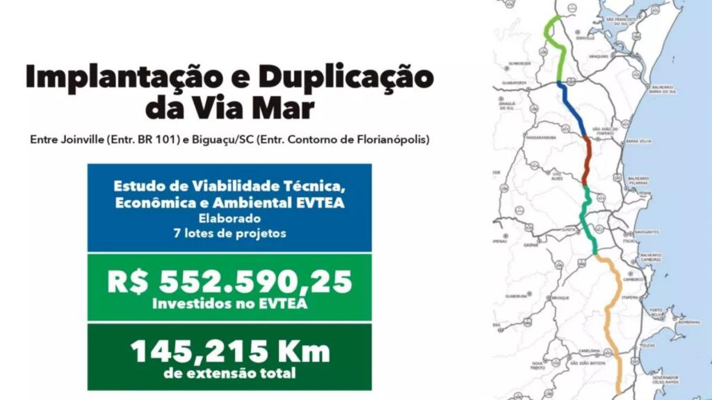 Jorginho Mello afirmou ainda que a Via Mar é uma resposta ao colapso cotidiano da BR-101, que vive congestionamentos constantes. Para ele, a nova rodovia será uma alternativa para trabalhadores, transportadores de carga, moradores e turistas, ajudando a impulsionar o desenvolvimento de municípios ao longo do percurso, incluindo Tijucas, que terá parte de seu território cortado pela obra.
