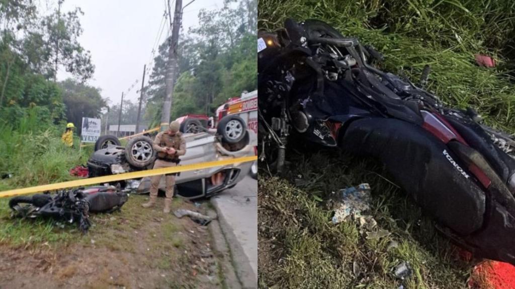 Um acidente registrado ainda na madrugada desta quarta-feira (3) deixou um homem morto e outras duas pessoas feridas em Brusque. A colisão ocorreu por volta de 4h45 na Rua Alberto Müller, no bairro Limeira, e envolveu um Hyundai Tucson e duas motocicletas Honda XRE.