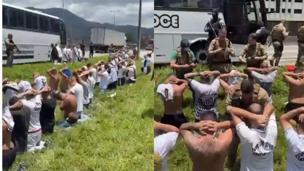 Após o conflito, dezenas de homens foram colocados ajoelhados no canteiro central da via, onde aguardaram os procedimentos policiais. A Polícia Militar iniciou a identificação individual dos envolvidos para verificar se algum deles possui mandado de prisão em aberto. Quem estiver nessa condição será detido imediatamente.