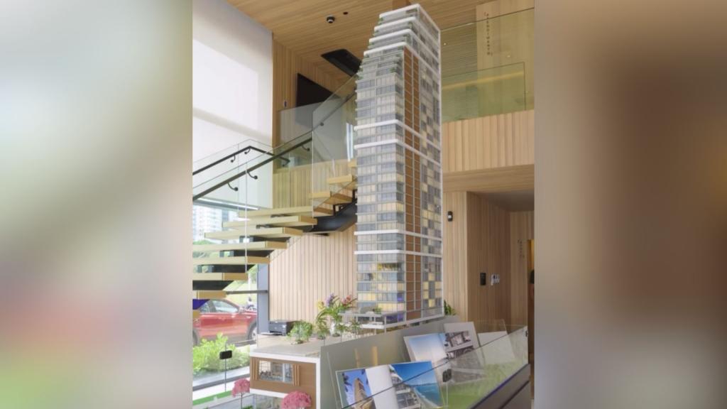 O projeto paisagístico da maquete, assinado pelo artista paulistano Daniel Nunes, inclui detalhes da orla, do entorno urbano e até do bistrô localizado no térreo. São 60 unidades de 4 a 6 suítes e mais de 2.700 m² de lazer, com centro de wellness, wine room, academia assinada e ambientes exclusivos.
