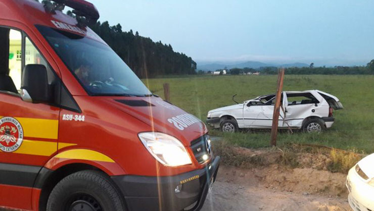 Infomações de testemunhas dão conta, que o Fiant/Uno com placas de São João Batista, trafegava no sentido a Canelinha, no momento em que um segundo automóvel teria provocado o capotamento. O Uno acabou parando em uma pastagem as margens da estrada.