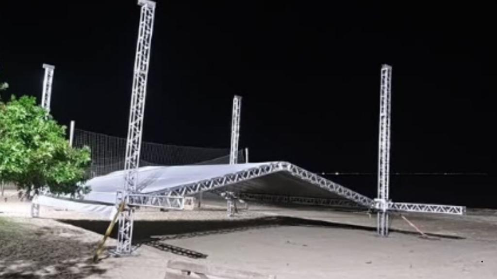 A praia do Pontal Norte, em Tijucas, já recebe a estrutura que vai sediar, pela primeira vez, o Réveillon à beira-mar do município. Equipes trabalham na instalação do palco e na limpeza do espaço, que será o ponto central da celebração no próximo dia 31 de dezembro, a partir das 21h.