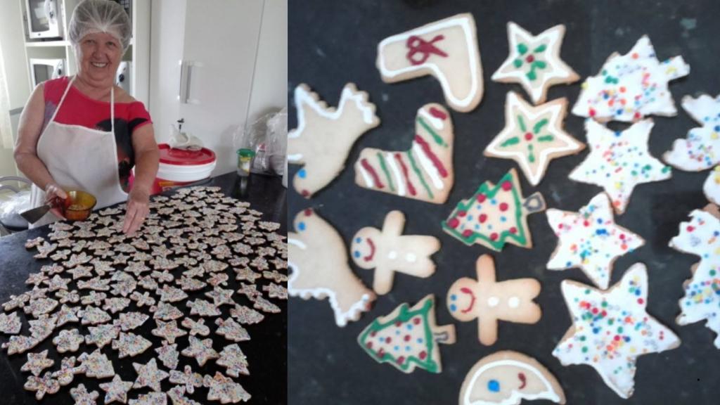 A preparação começa ainda em novembro, quando ela organiza o estoque de ingredientes básicos como açúcar, manteiga, ovos e farinha. A rotina diária inicia por volta das 5h, com a produção e o forneamento dos doces durante a manhã. No período da tarde e à noite, acontece a etapa de pintura, aplicação de miçangas e acabamento, seguida da embalagem para retirada dos clientes.