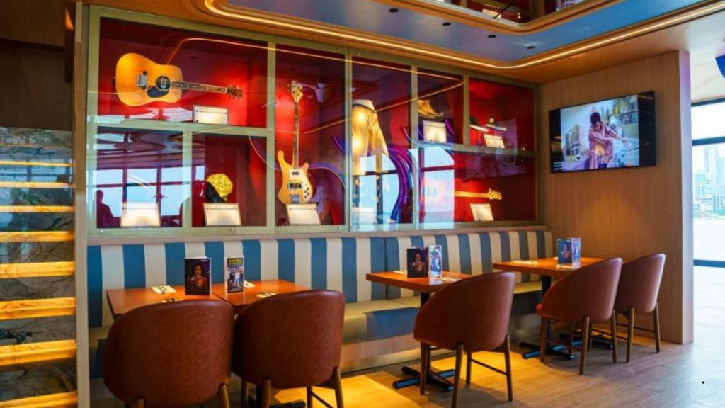 Outro destaque é a coleção de memorabilia musical. Ao todo, 55 itens originais integram o acervo exposto, incluindo peças associadas a Elvis Presley, Madonna, The Beatles, Guns N’ Roses, James Brown, B.B. King e Whitney Houston, reforçando a proposta de unir música, cultura pop e experiência gastronômica.