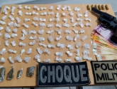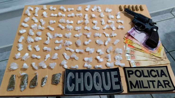 Foi realizado operação nas localidades de Ribanceira do Sul e Jardim São Paulo tendo como resultado apreensão de 102 buchas de cocaína, 5 ‘tablet’ de maconha, 1 revólver cal. 38 com numeração suprimida (raspado) com 6 munições, 225 reais em dinheiro, 20 pedras de crack, 05 porções de cocaína; e dois masculinos com mandados de prisão por homicídio no Rio Grande do Sul, foram presos.