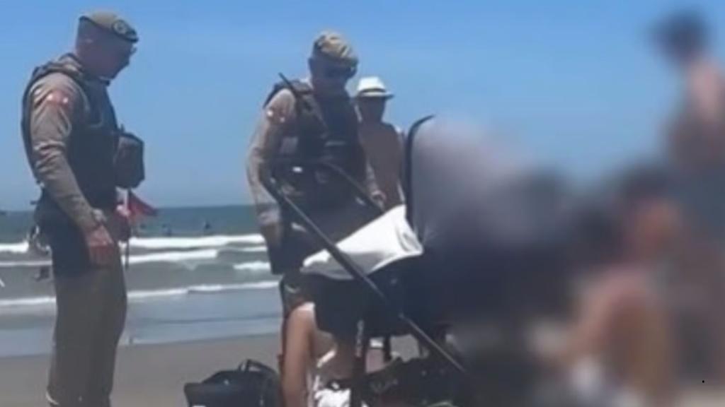 Uma criança recém-nascida foi flagrada na praia sob sol intenso e ao lado de uma caixa de som em volume elevado, em uma cena que rapidamente provocou indignação entre banhistas e repercussão nas redes sociais em Balneário Camboriú. A Polícia Militar atuou no caso.