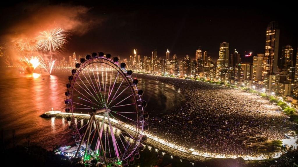 Em Balneário Camboriú, a Praia Central concentra a maior movimentação, com expectativa de receber cerca de um milhão de visitantes na noite do dia 31 de dezembro. O espetáculo pirotécnico terá duração aproximada de 15 minutos, com oito balsas flutuantes distribuídas ao longo da orla, uso de 16 tipos de fogos e projeção da contagem regressiva na roda-gigante Big Wheel.