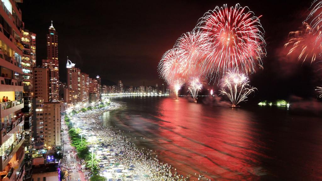 Itapema terá queima de fogos com duração aproximada de 12 minutos, distribuída em seis balsas, quatro na Meia Praia e duas no Centro. A novidade é a inclusão do bairro Ilhota, que receberá uma queima terrestre realizada no topo de um edifício, ampliando o alcance visual da celebração.