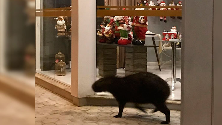 Um internauta flagrou na noite desta terça-feira (19), uma capivara andando pelo centro de Tijucas.O episódio aconteceu na rua Treze de Maio e quem passava pelo local se encantava com o animal passeando tranquilamente pela rua.