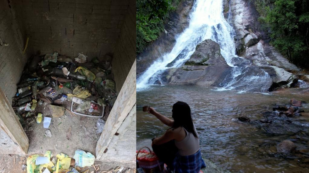 Registros de lixo em áreas naturais provocam desabafos, bloqueios de acesso e novas interdições em cascatas da região. Fotos: Alexandre Montibeller/TopElegance/Divulgação