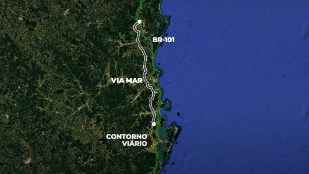 O empreendimento faz parte da Via Mar, rodovia litorânea paralela à BR-101 que terá, ao todo, 145 quilômetros, ligando Joinville ao Contorno de Florianópolis. O custo estimado para a implantação da nova rodovia varia entre R$ 7,5 bilhões e R$ 9,2 bilhões.