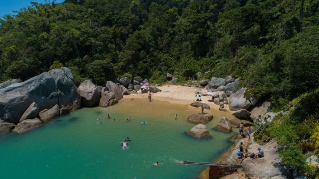 Um pequeno recanto de apenas 65 metros de extensão passou a atrair olhares de todo o país depois que vídeos de saltos no mar começaram a se espalhar pelas redes sociais, transformando um trecho quase intocado do litoral em um dos pontos mais desejados por quem visita Santa Catarina. O cenário fica na Praia do Cação, em Bombinhas, onde um simples trampolim instalado sobre as rochas virou o principal chamariz do local.