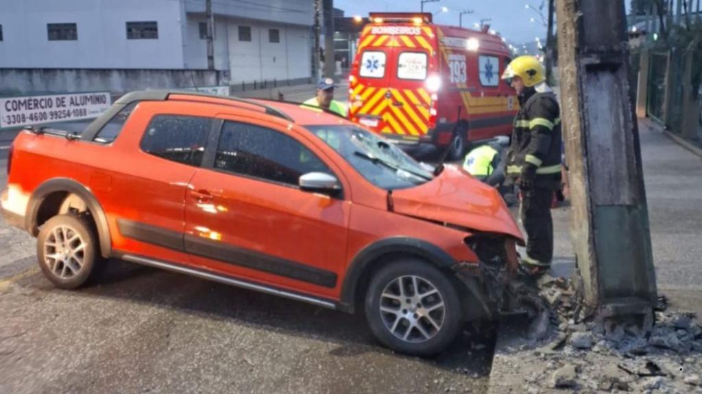 A colisão aconteceu por volta das 5h03, na rua Germano Furbringer, quando o veículo conduzido pela vítima saiu da pista e bateu frontalmente contra a estrutura. O homem, de 43 anos, dirigia uma caminhonete Volkswagen Saveiro Cross.