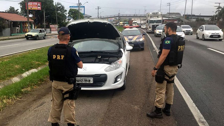 Policiais Rodoviários Federais flagraram na noite desta quarta-feira (20), um veículo clonado na BR -101, em Biguaçu. Os agentes abordaram um Peugeot/308, com registro de furto/roubo, durante uma fiscalização de trânsito na rodovia.