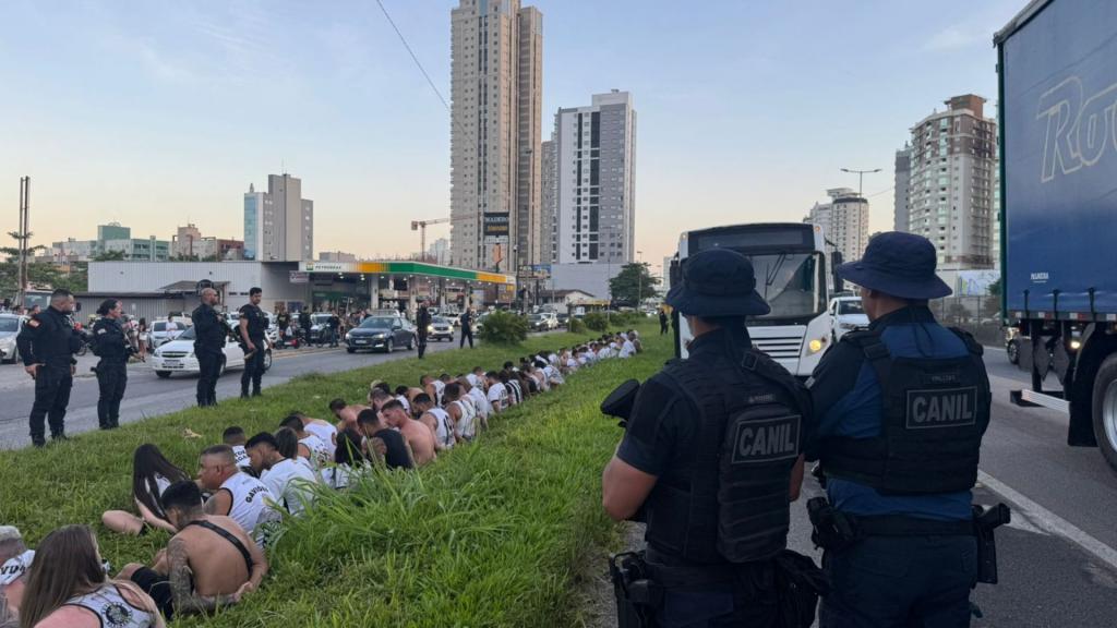 Um ônibus com integrantes de uma torcida organizada do Figueirense foi interceptado e impedido de seguir viagem em Itapema, após denúncias de vandalismo e baderna durante o trajeto em direção a Joinville. A abordagem ocorreu por volta das 17h45 desta quarta-feira (7) e resultou na detenção de um dos ocupantes, que possuía mandado de prisão em aberto.