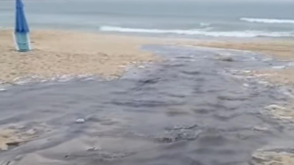 Vídeos divulgados nas redes sociais mostram o efluente saindo de uma galeria localizada no trecho central da praia, acompanhado de forte odor relatado por banhistas. As imagens ampliaram a repercussão do caso e motivaram a mobilização da comunidade local.