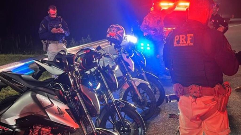 Durante a abordagem, a PRF constatou que duas motocicletas circulavam sem placas, uma utilizava dispositivo mecânico para ocultar os caracteres e outra estava com a chapa coberta por fita adesiva. Ao todo, quatro condutores e três passageiros foram interceptados, sendo quatro deles menores de idade, o que agravou a responsabilização penal dos adultos envolvidos.