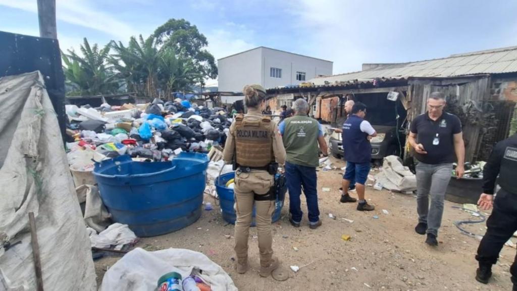 Em Itapema, na quinta-feira (16), a Operação Choque de Ordem e Alta Tensão contou com apoio da Guarda Municipal e de fiscais da Prefeitura. Quatro ferros-velhos e recicladoras foram vistoriados; em dois deles foram identificadas pendências de alvará e documentação, com prazo concedido para regularização. Nenhum material de origem ilícita foi apreendido, mas 0,4 grama de substância análoga à maconha foi encontrada com um funcionário, gerando registro de ocorrência.