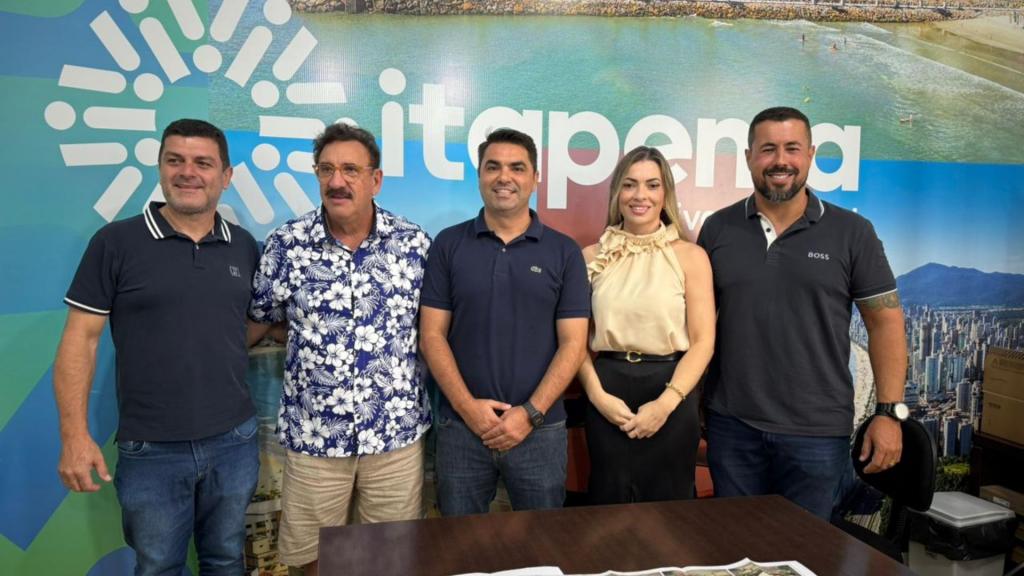 O prefeito de Itapema, Alexandre Xepa, recebeu nesta sexta-feira (23) o apresentador Carlos Massa, o Ratinho, em visita institucional ao município. A agenda contou com a presença de secretários municipais e teve como foco a apresentação de projetos estratégicos voltados ao desenvolvimento urbano, ao fortalecimento do turismo e à qualificação dos espaços públicos da cidade.