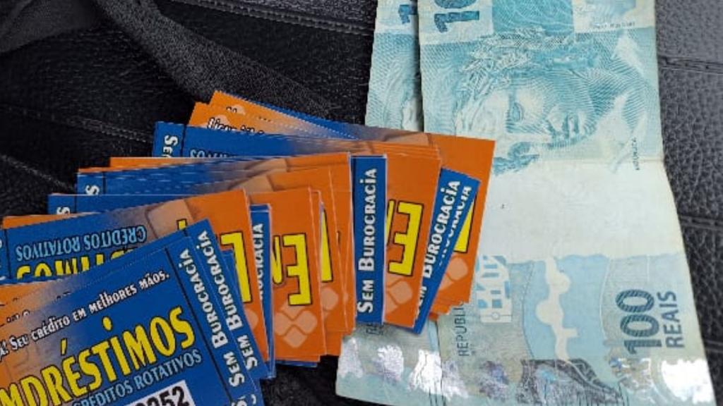 Na sequência, um morador do município compareceu ao local e relatou à guarnição que havia acabado de contrair um empréstimo no valor de R$ 500, com pagamento parcelado diretamente ao suspeito, confirmando a prática ilegal.