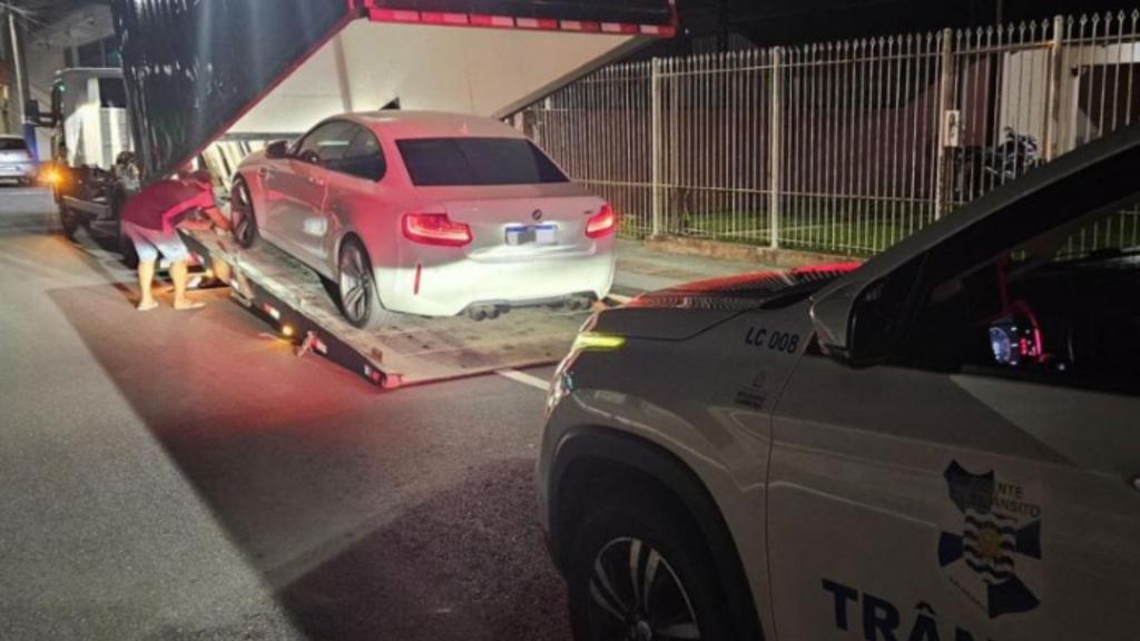 De acordo com os agentes, o automóvel — um BMW M2 — já havia sido removido anteriormente pelos mesmos motivos. Durante rondas de fiscalização, a equipe identificou o veículo trafegando pela Rua Dom José, na esquina com a Marginal Oeste, e reconheceu que se tratava do mesmo carro envolvido em apreensão anterior por condução sem habilitação e descarga inoperante.