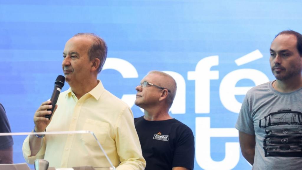 Além do governador, estiveram presentes o prefeito da Capital, Topázio Neto, o assessor Alexandre da Silva, coordenador das igrejas evangélicas do governo estadual, o pré-candidato ao Senado Carlos Bolsonaro, e os deputados estaduais Marcos da Rosa e Jair Miotto, ambos do União Brasil.